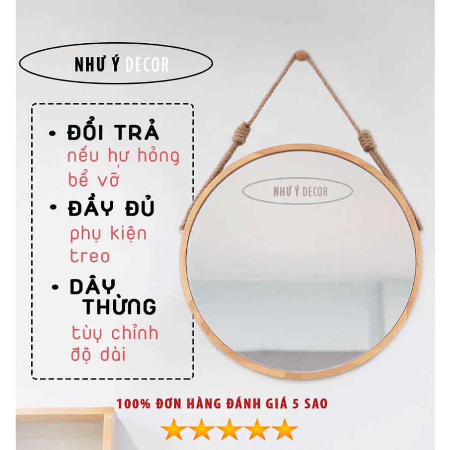 Gương Tròn Treo Tường Trang Điểm Cổ Điển, Trang Trí Phòng Khách, Phòng Ngủ Đẹp, Decor Dây Thừng Khung Viền Gỗ Giá Rẻ
