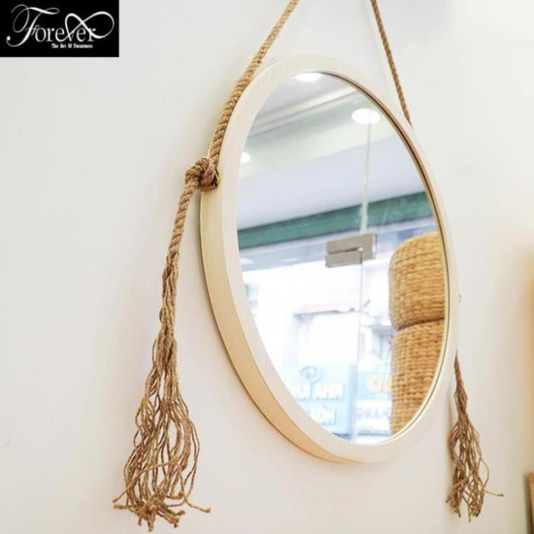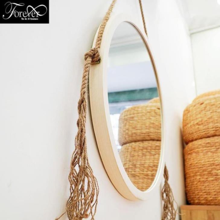 Gương soi là một vật dụng mà gia đình nào cũng cần có. Những kiểu gương đơn giản, mộc mạc theo phong cách vintage giúp tạo điểm nhấn nhẹ nhàng cho không gian căn phòng, hiện nay đang trở thành xu hướng. Nếu bạn cũng đang lên ý tưởng trang trí căn phòng, cần lựa chọn những món đồ nội thất đẹp thì bạn không nên bỏ qua sản phẩm gương gỗ treo tường của Nội Thất Nghệ Thuật Forever. Mẫu gương tròn khung gỗ chính là một trong những mẫu gương soi decor rất được ưu chuộng, giúp không gian nhà bạn thêm lung linh và nghệ thuật hơn.Với thiết kế giản dị và tự nhiên vốn có, chiếc gương soi này là sự kết hợp hài hòa trong ý tưởng thiết kế không gian ngôi nhà của bạn. Bạn có thể trang trí gương gỗ treo tường để thay thế cho tranh ảnh hoặc treo ngay khu vực ngoài nhà tắm vừa tiện lợi vừa thời trang (Không nên để nội thất gỗ trong phòng tắm vì dễ gây nấm mốc và mùi khó chịu).