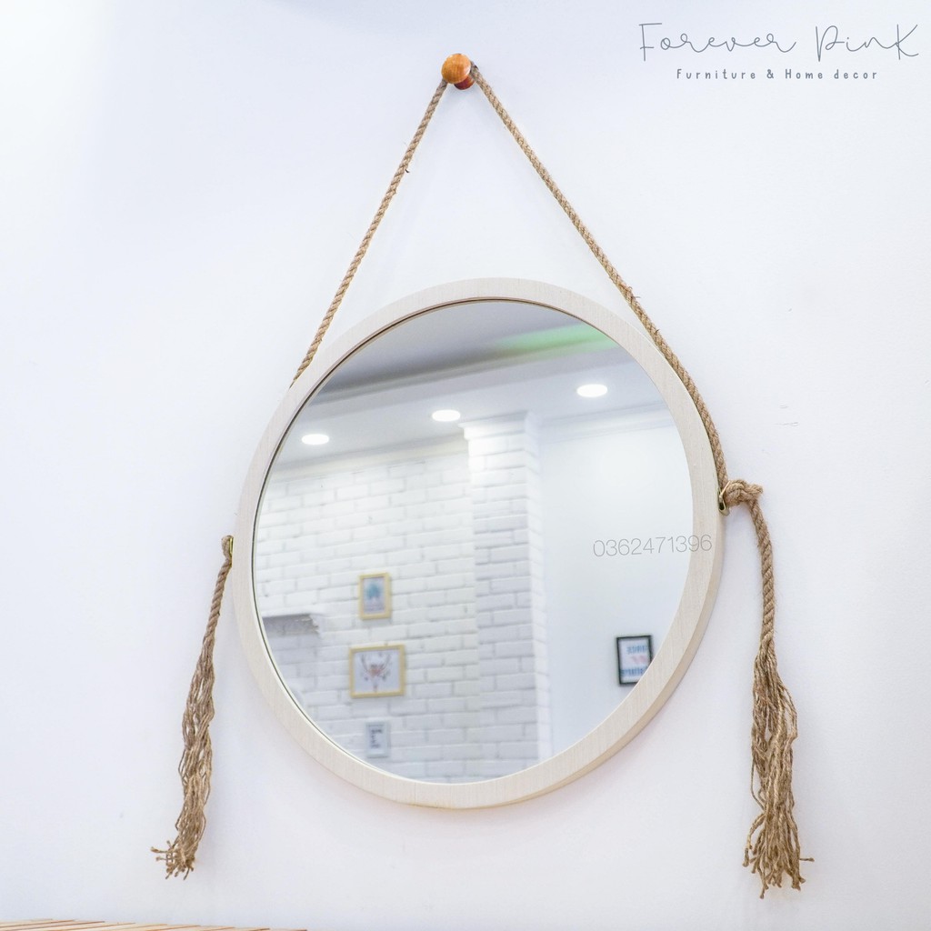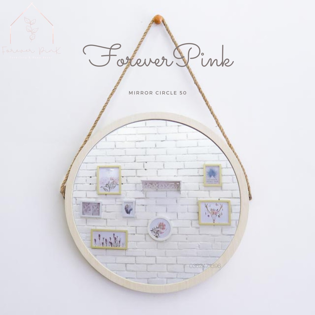 Gương Tròn Treo Tường Khung Gỗ - Mirror Circle 50 - Hàng Xuất Khẩu Nhật - Forever Pink
