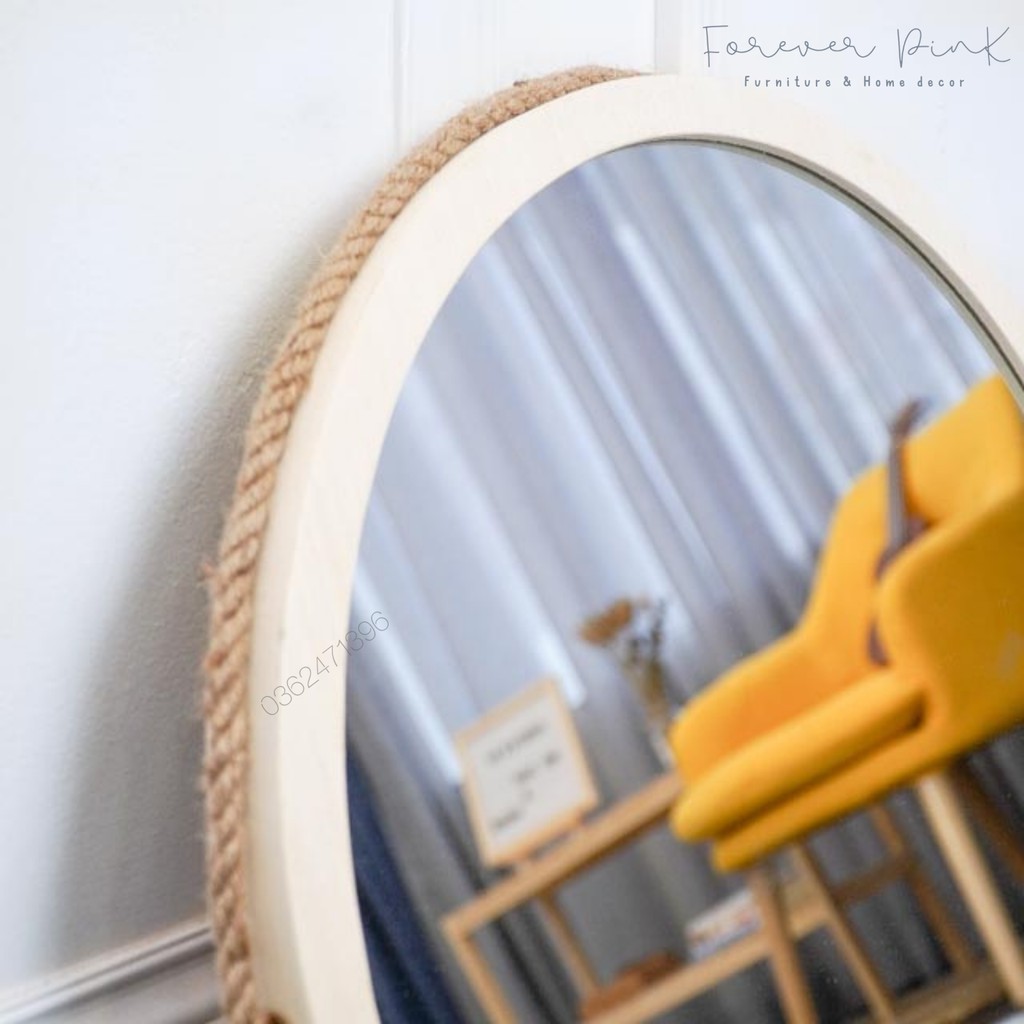 Gương tròn phòng tắm treo dây thừng được thiết kế đơn giản, mộc mạc nhưng thu hút bởi kiểu dáng độc đáo, sự gần gũi nên chinh phục rất nhiều khách hàng.