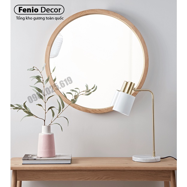 Gương tròn treo tường khung viền gỗ tự nhiên. Khung viền xung quanh gương được bọc bởi gỗ tự nhiên. Khung gỗ được tẩm sấy, chống mối mọt chống cong vênh, từng cạnh mép của khung được mài gọt tỉ mỉ, khéo léo. Thiết kế hiện đại, nhẹ nhàng, tinh tế. Gương tròn treo tường khung viền gỗ tự nhiên là sự lựa chọn hàng đầu cho những không gian nội thất hiện đại, scandinavian, Hàn Quốc....✔ Viền GỖ SỒI cực kì chắc chắn và bền bỉ, các đường vân gỗ rõ nét, tươi hơn, đẹp hơn so với gỗ thông.
