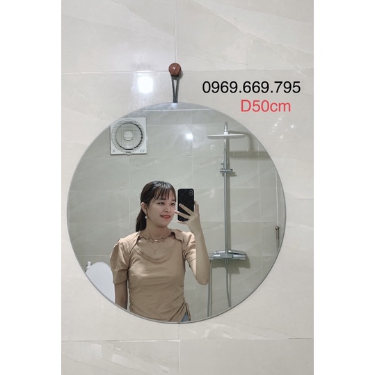 Giới thiệu Gương tròn treo tường trụ gỗ đường kính 50cm Noithatnhatnam, Gương dán tường dán mọi bề mặt