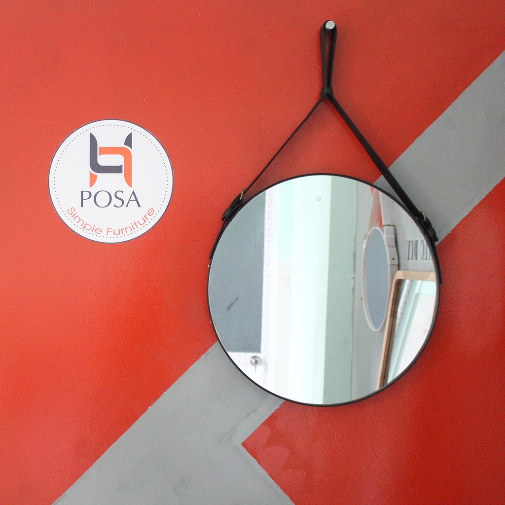 Giới thiệu Gương tròn treo tường viền da Posa