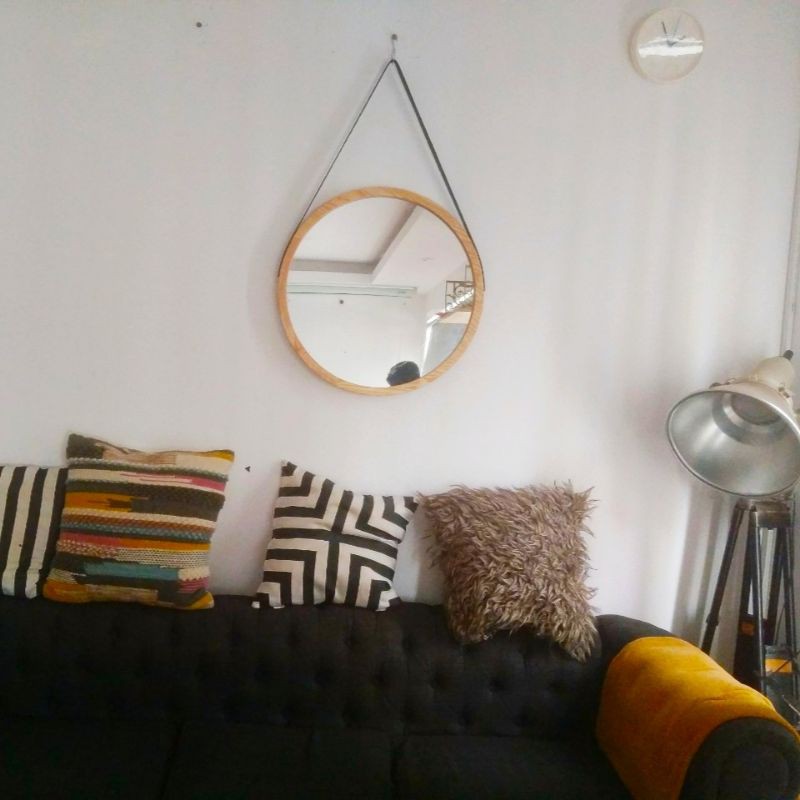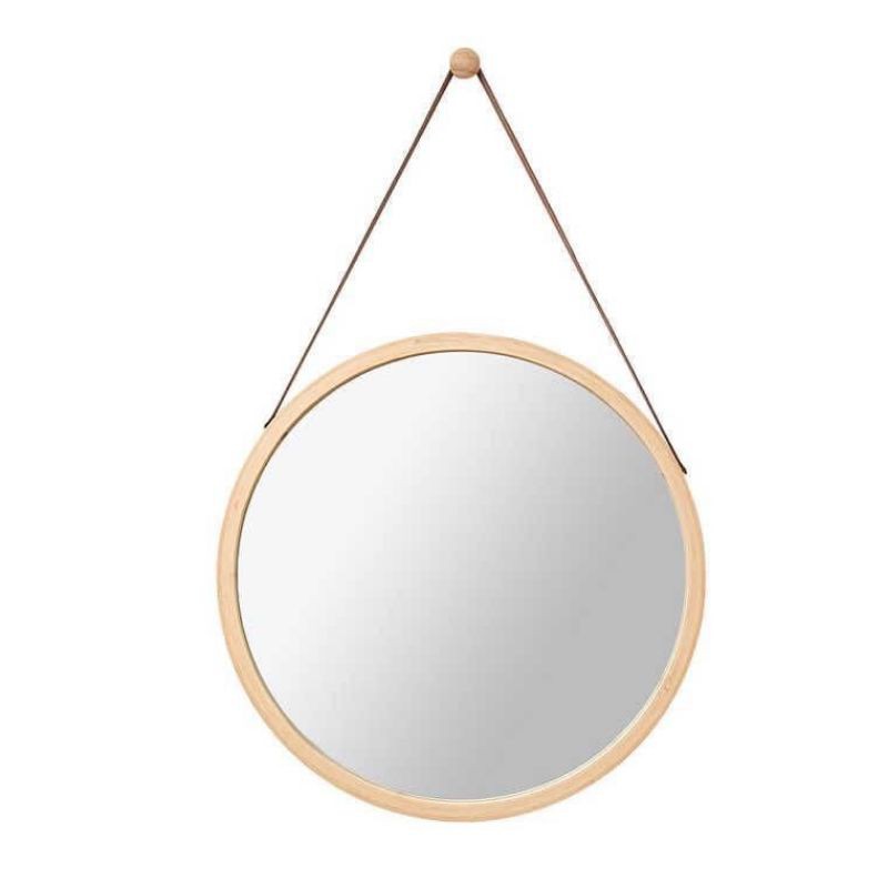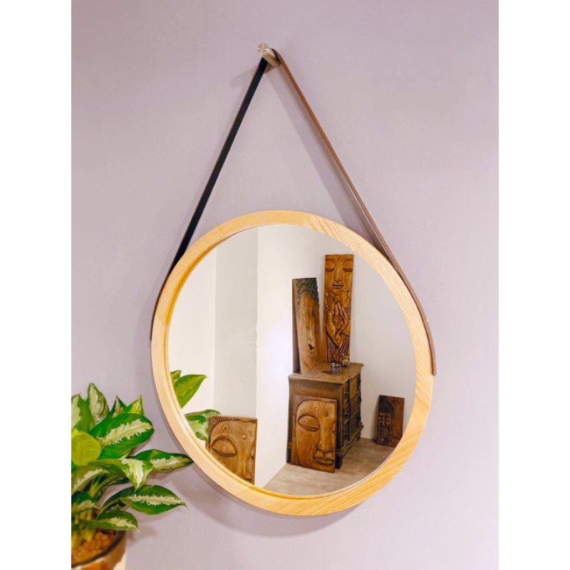 Giới thiệu Gương Tròn Viền Gỗ Sồi Quai Da Treo Tường Cao Cấp, Gương Trang Trí Nhà Cửa Phong Cách Bắc Âu
