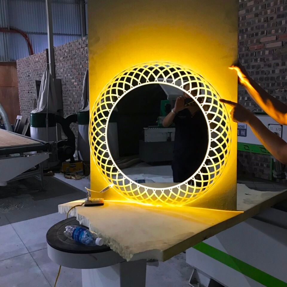 Giới thiệu Gương Tròn Viền Led Cảm Ứng Họa Tiết 3D Độc Đáo, Gương Trang Điểm, Gương Trang Trí Nhà Cửa