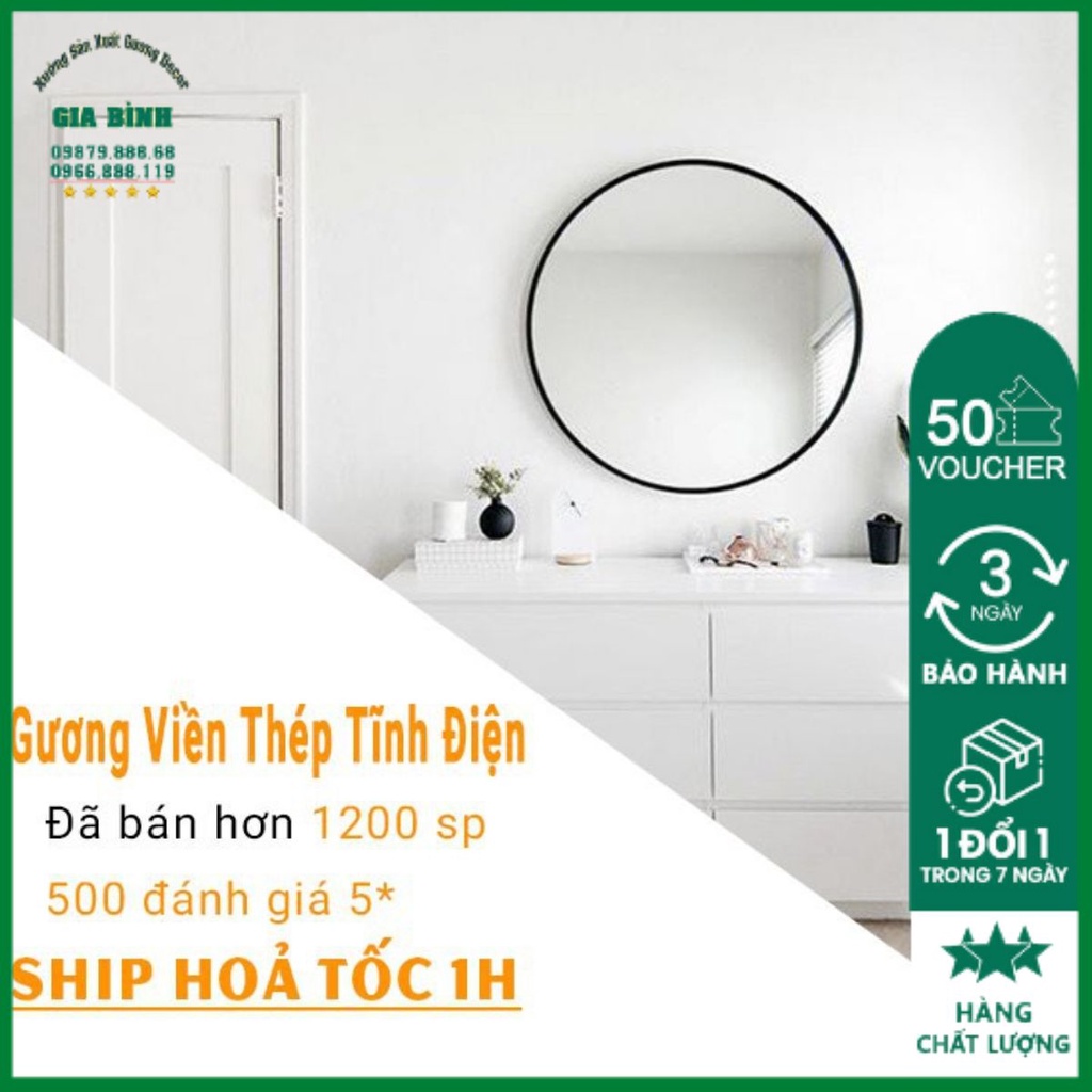 Nhà cửa & Đời sống > Trang trí nhà cửa > Gương || Gương tròn viền thép sơn tích điện D60Còn hàng