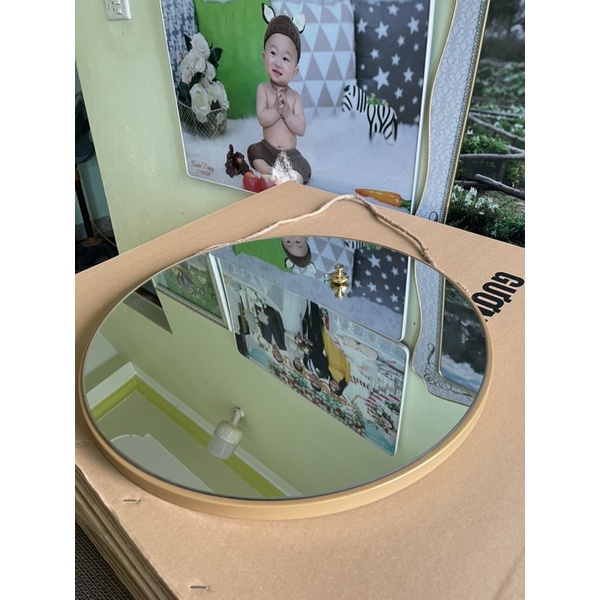 Gương viền thép treo dây, gương tròn treo cúc dây.Mẫu chụp thật