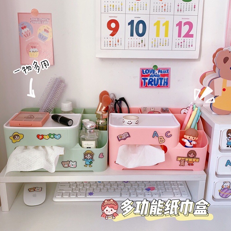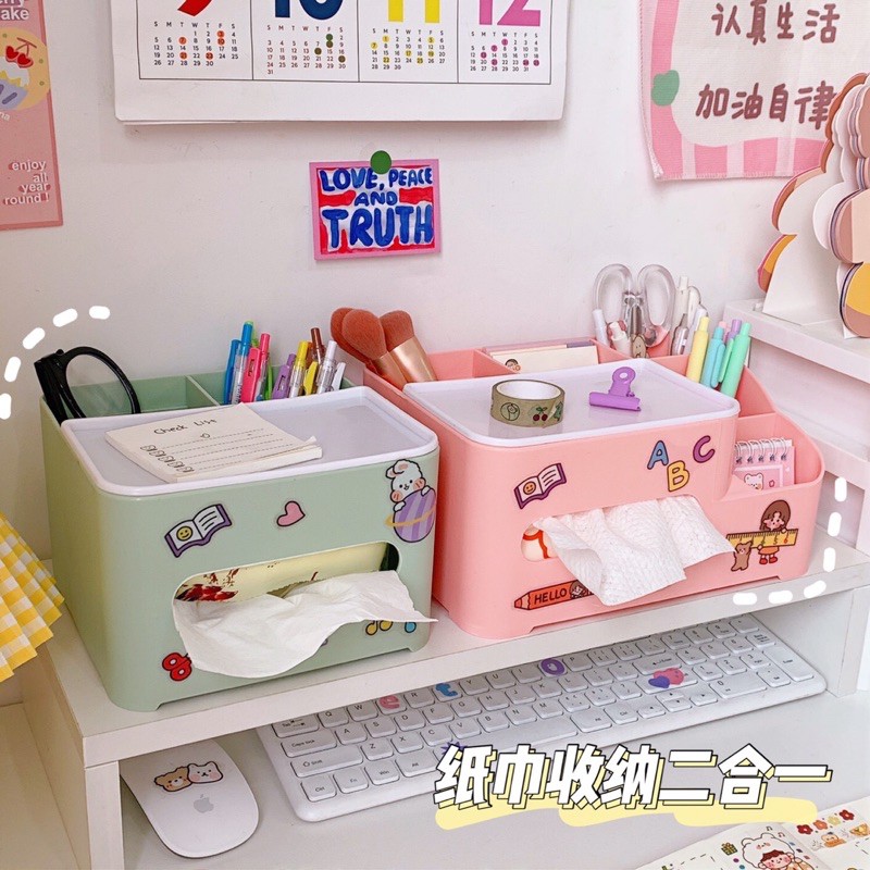 Nhà cửa & Đời sống > Sắp xếp nhà cửa > Hộp khăn giấy || [H001] Hộp Đựng Khăn Giấy Nhiều Ngăn Trang Trí Bàn Học Ins GiasicoCòn hàng