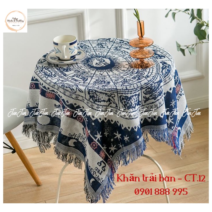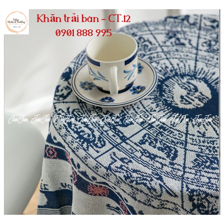 -Khăn trải bàn vải sợi dòng cao cấp cotton pha lient phong cách Bắc Âu