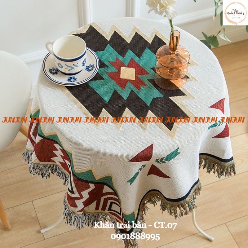 -Khăn trải bàn vải sợi dòng cao cấp cotton pha lient phong cách Bắc Âu