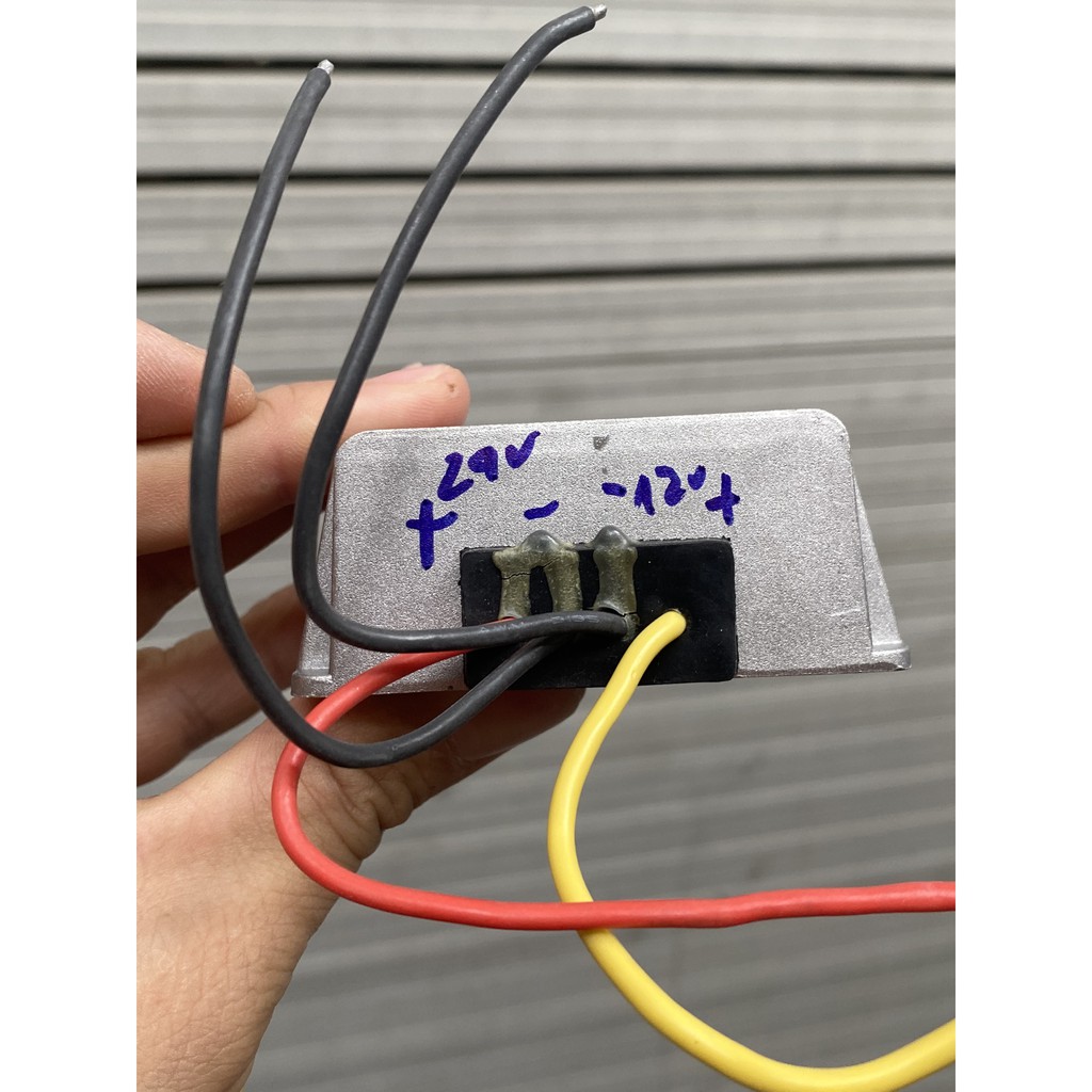 Bộ chuyển đổi Kích thước Cắm: Có 2 đầu dây vào điện 24v và 2 đầu dây ra 12v ( phân biệt âm dương màu đỏ (+) đen (-)