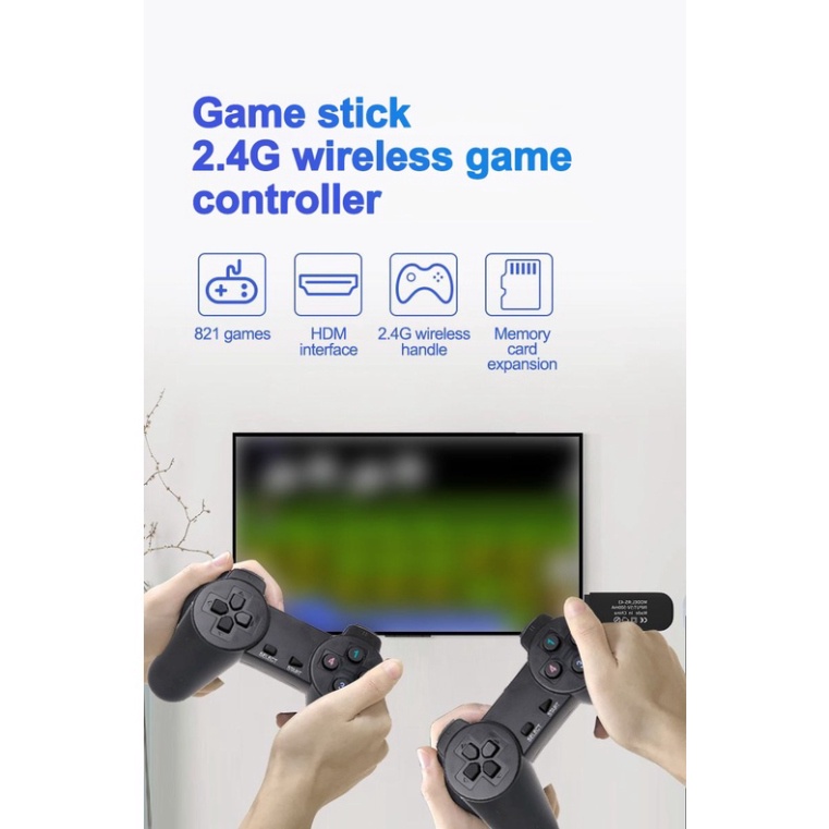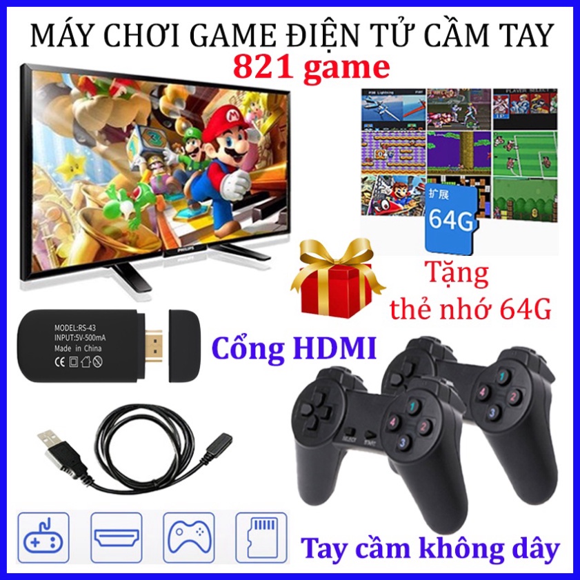 Máy Chơi Game Siêu Phẩm 2021 Stick HDMI 821 Trò Chơi Tặng Thẻ Nhớ 64G Kèm 2 Tay Cầm Không Dây***** Tặng thẻ nhớ đã có sẵn 821 game xưa *****