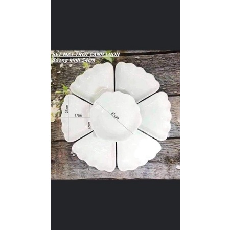1 bộ có 1 bát tròn hoa kt 25cm, 6 đĩa kt 23cm