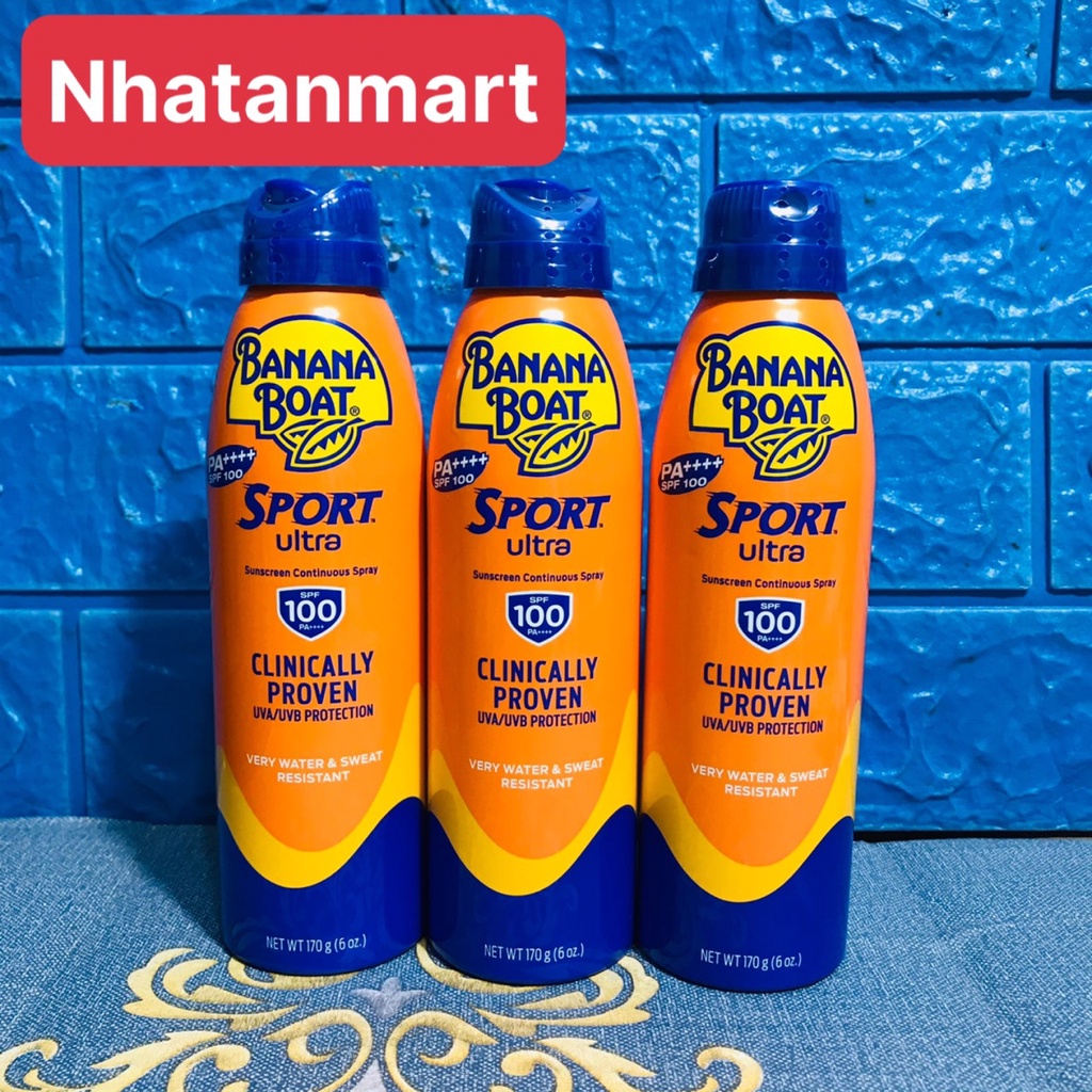 Sức Khỏe > Chăm sóc cá nhân > Chống muỗi & xua đuổi côn trùng || [HÀ NỘI]Chai Xịt Chống Nắng Thể Thao Banana Boat SPF100 (170g)Còn hàng
