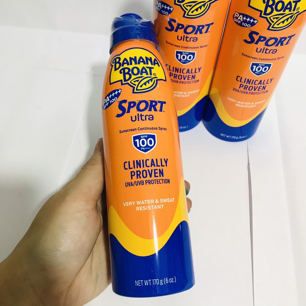 Kem Chống Nắng Banana Boat là chai xịt chống nắng dành cho các hoạt động thể thao với thành phần chống nắng SPF 100PA++++ bảo vệ da mạnh mẽ lên tới 1000 phút suốt thời gian bạn ra ngoài nắng.