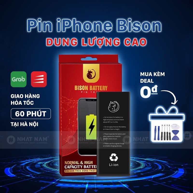 [ Hà Nội ] Pin IPhone Dung Lượng Cao Bison Dùng Cho IPhone 6/6S/6P/6sP/7/7Plus/8Plus/X/XS/XR/XsMax