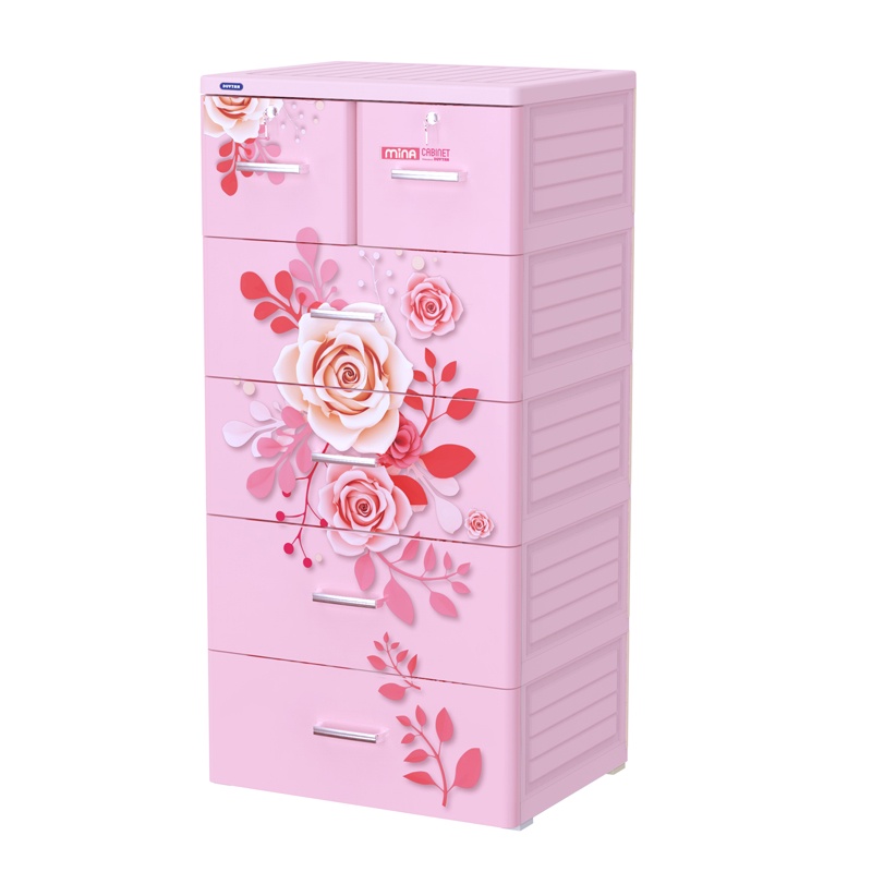 Tủ nhựa Duy Tân Mina 5 tầng có kiểu dáng sang trọng, họa tiết trang trí đẹp.Thiết kế nhiều ngăn, có khóa đóng mở ở 2 ngăn kéo nhỏ trên cùng.