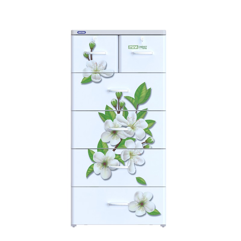 Giới thiệu [Hà Nội] Tủ nhựa Duy Tân Mina 5 tầng 6 ngăn (màu trắng, hoa bưởi)