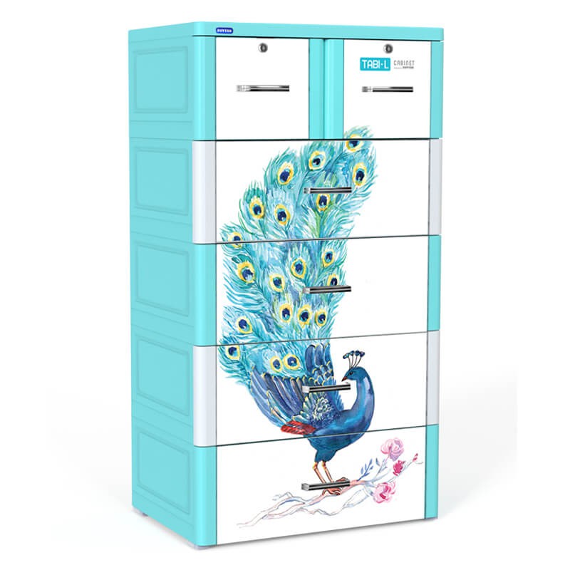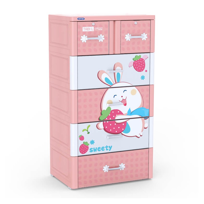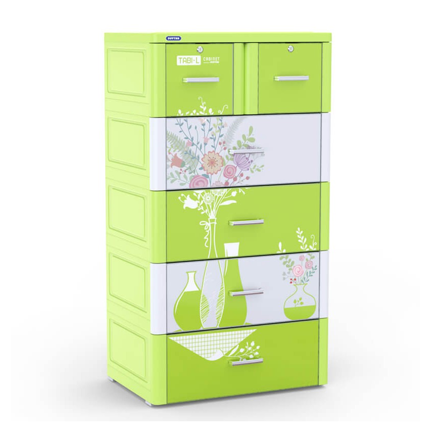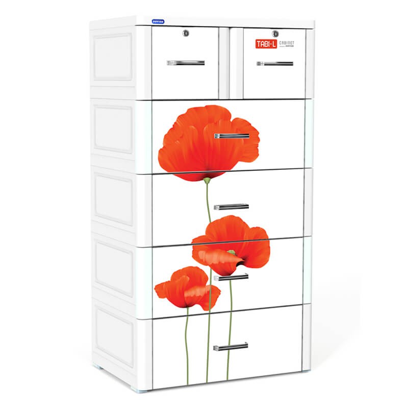 Tủ nhựa Duy Tân Tabi-L 5 tầng có kiểu dáng sang trọng, họa tiết trang trí đẹp, xinh xắn.Thiết kế nhiều ngăn, có khóa đóng mở ở 2 ngăn kéo nhỏ trên cùng giúp cất giữ đồ an toàn và tiện nghi hơn.