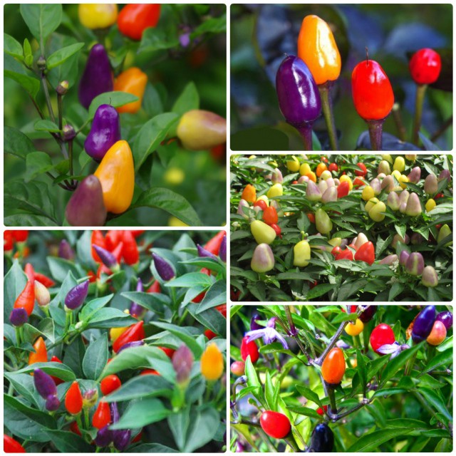 Ớt ngũ sắc:Cây khỏe sai quả với nhiều màu sắc.
