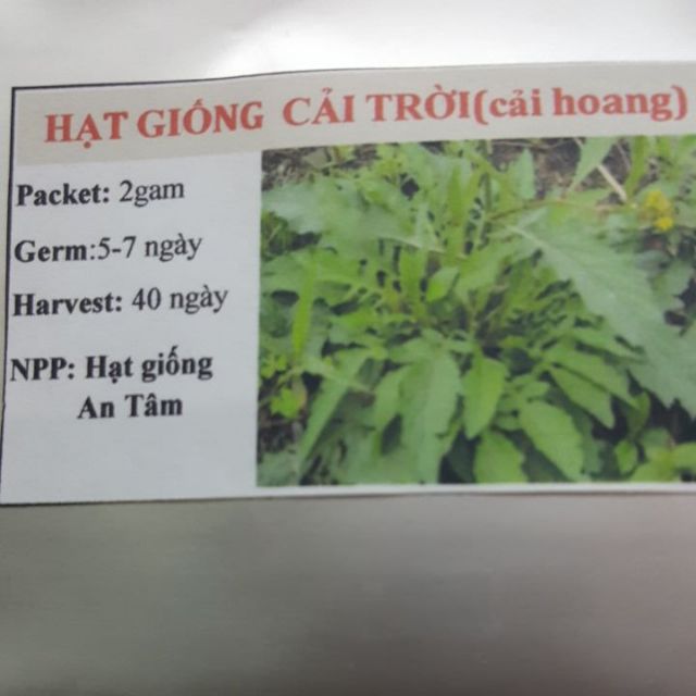 Đóng gói: 0.1gamTên dân gian thường gọi: Cải trời, cải đồng, cải hoang...