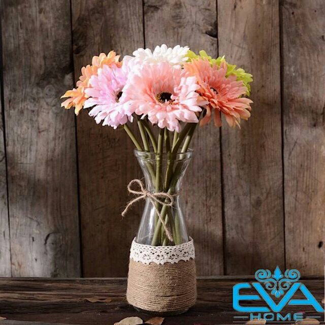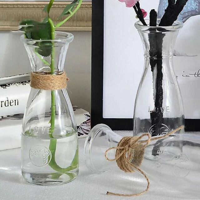 Bình bông lọ hoa thủy tinh eo nhỏ được tặng kèm dây cột eo 10cm.