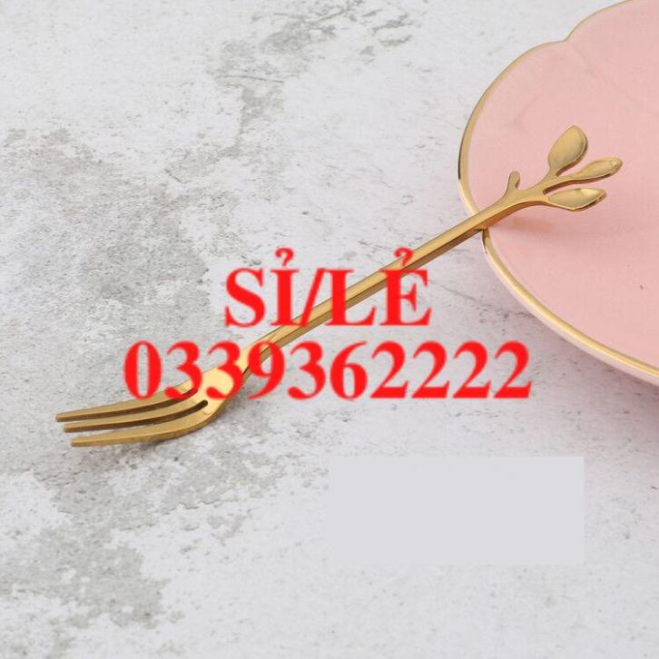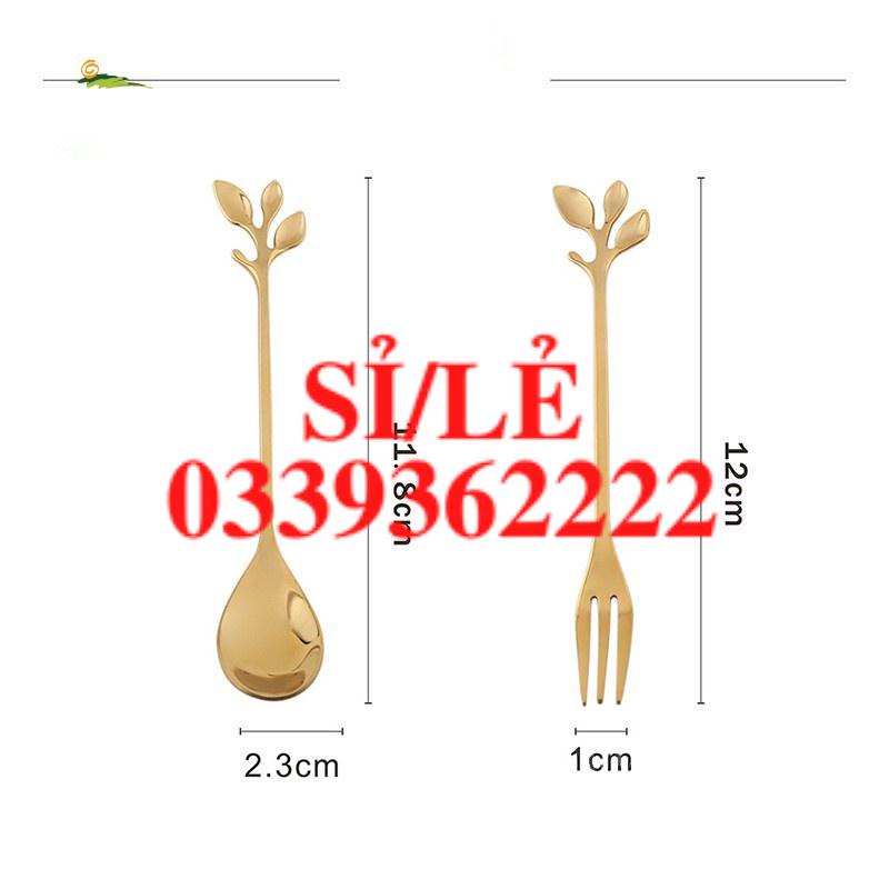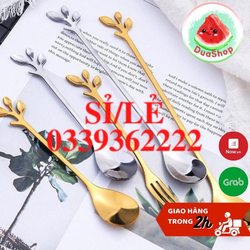 [ HAIANHSHOP ] Thìa Mini - Dĩa Mini Cao Cấp Inox 304 Mạ Vàng/ Bạc Phủ Bóng Sang Trọng - Cán Hình Lá Độc Đáo Duashop >