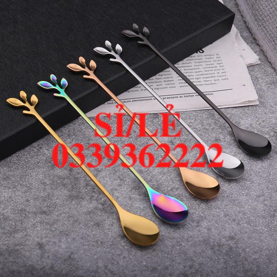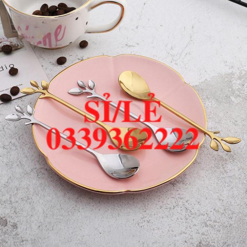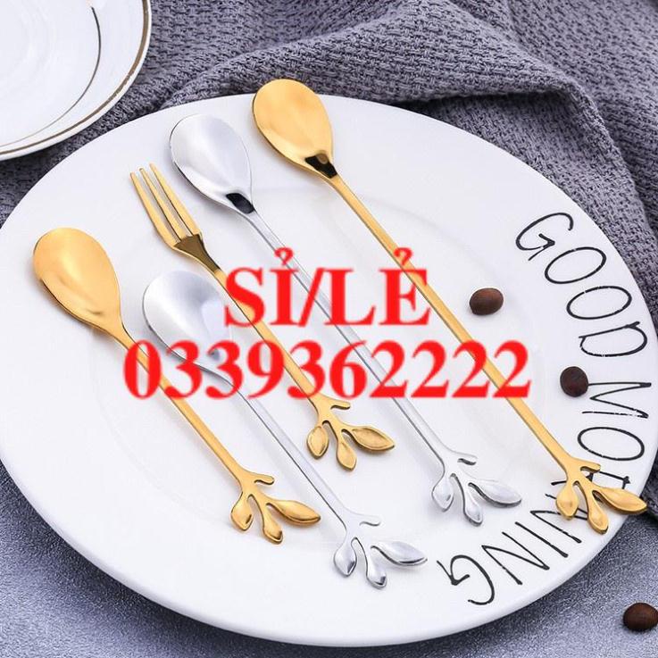 Nhà cửa & Đời sống > Dụng cụ nhà bếp > Dụng cụ pha trà, cà phê || [ HAIANHSHOP ] Thìa Mini - Dĩa Mini Cao Cấp Inox 304 Mạ Vàng/ Bạc Phủ Bóng Sang Trọng - Cán Hình Lá Độc Đáo Duashop >Còn hàng