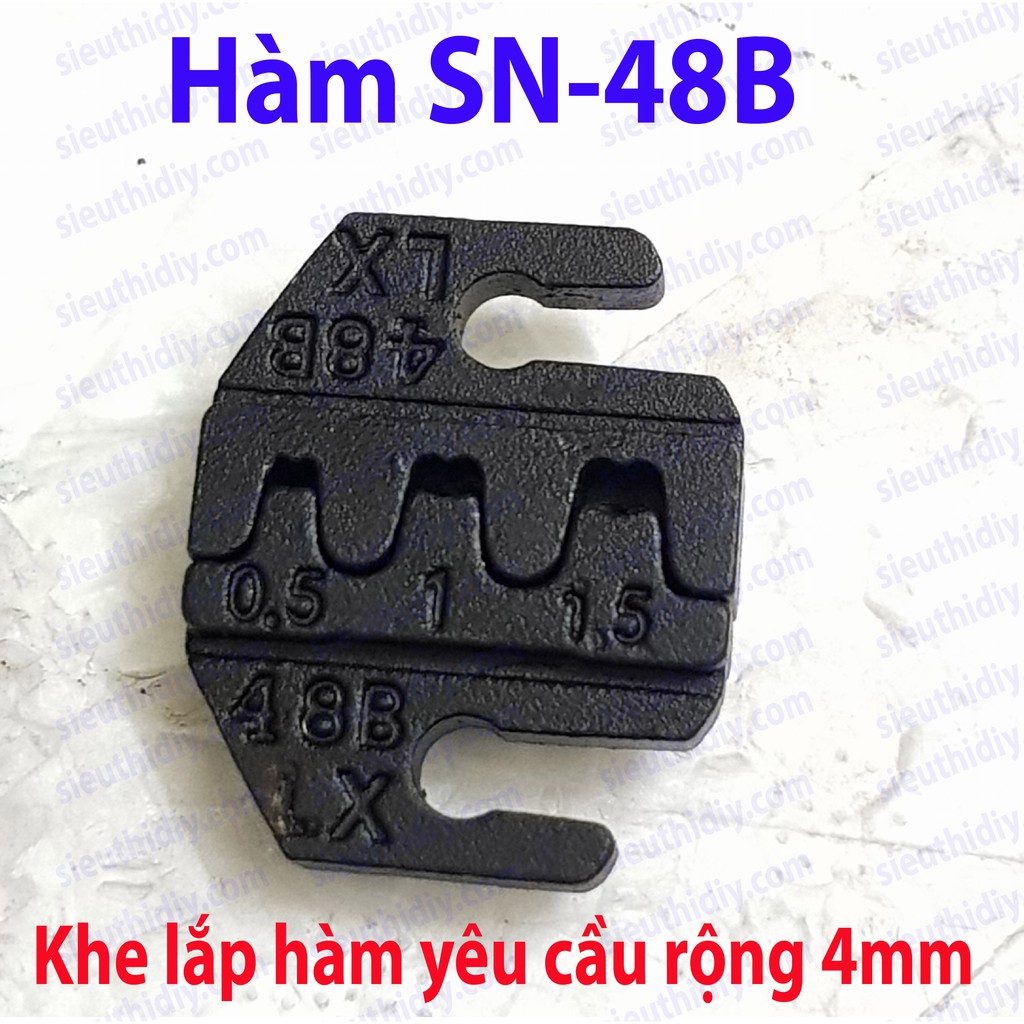 + 48B: Hỗ trợ tiết diện dây 0.14-1.5mm2 ( Cỡ dây từ 26-16AWG ) thường dùng bấm các loại cốt cắm điện thông dụng trong dân dụng, cốt xe máy.. (6.3mm - 4.8mm - 2.8mm - cốt đầu đạn - cốt xe máy - cốt ô tô..)
