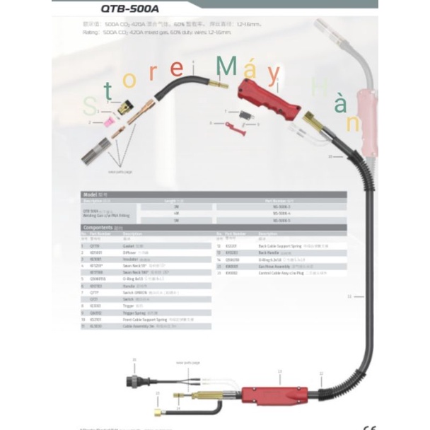 Súng hàn North 500A (3m) PANA dùng cho máy hàn mig.Súng hàn mig 500a dài 3m