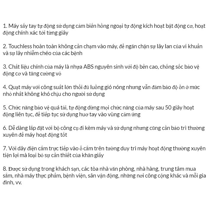 Giới thiệu Hand Dryer Automatic - Máy sấy tay tự động công suất 1800W