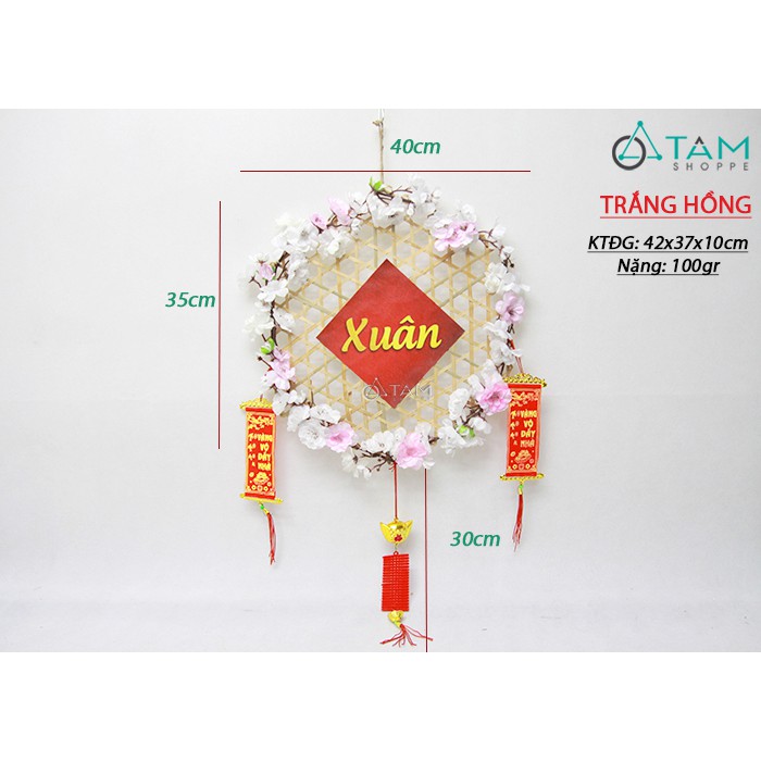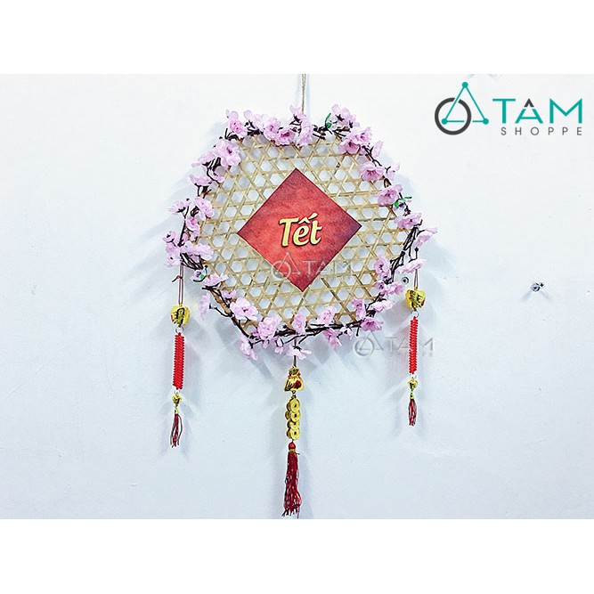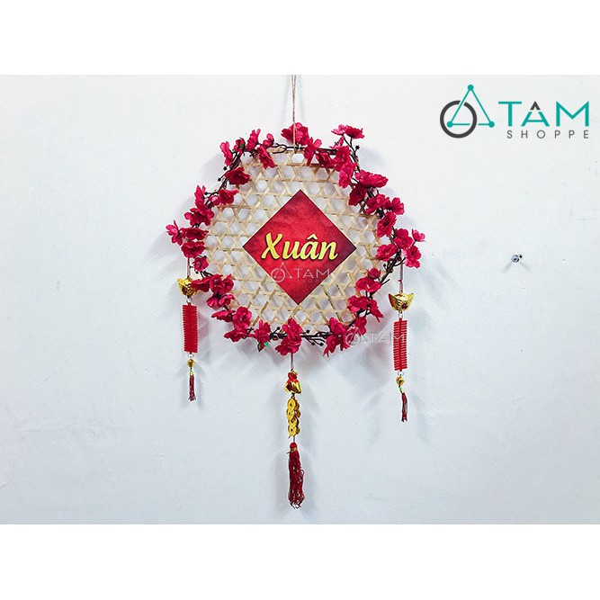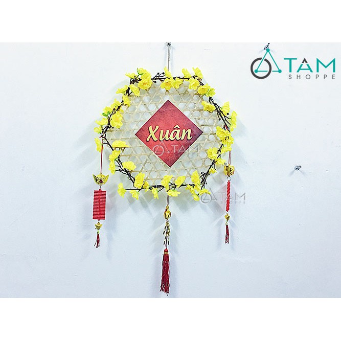 Nhà cửa & Đời sống > Trang trí nhà cửa > Rèm cửa, màn che || [HANDMADE DÀY ĐẸP] Vòng hoa treo cửa Tết Handmade mành tre lục giác ĐK 40cm T-VTC-12Còn hàng