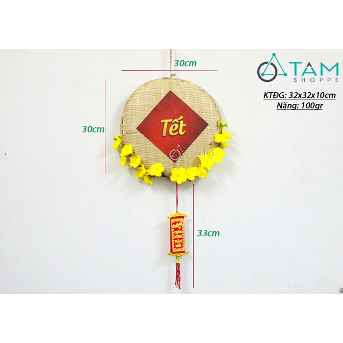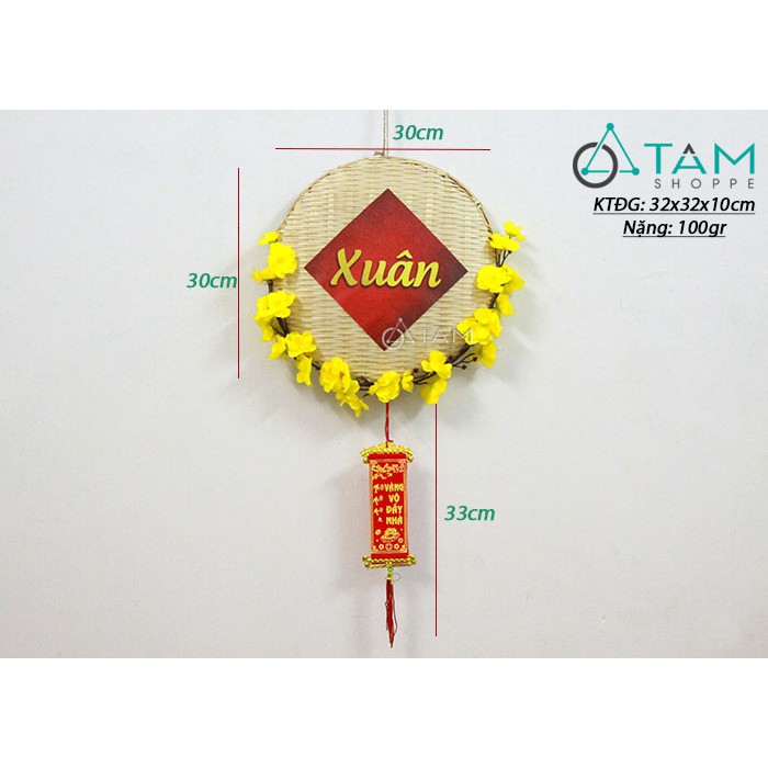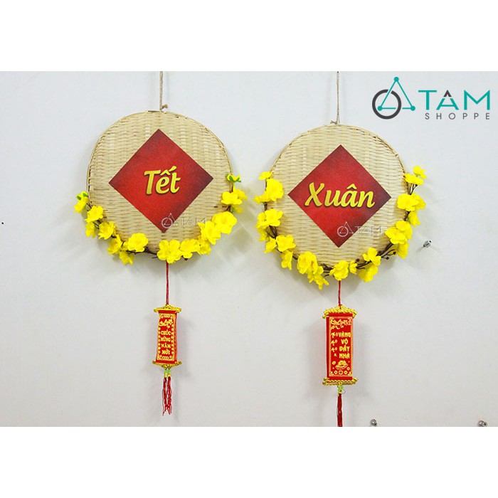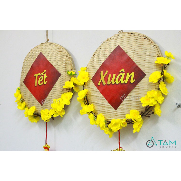 Nhà cửa & Đời sống > Trang trí nhà cửa > Rèm cửa, màn che || [HANDMADE DÀY ĐẸP] Vòng treo cửa Tết mẹt tre hoa mai ĐK 30cm T-VTC-11Còn hàng