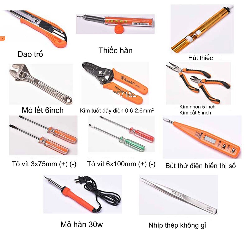 Nhà cửa & Đời sống > Dụng cụ & Thiết bị tiện ích > Dụng cụ > Hộp dụng cụ cầm tay || [Chính hãng] [Ảnh thật] Bộ dụng cụ sửa chữa điện chuyên dụng 15 chi tiết hãng Asaki model AK-9830Còn hàng
