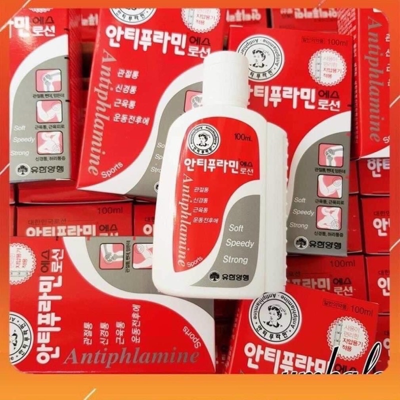 Dầu nóng xoa bóp Antiphlamine là sản phẩm nổi tiếng được người dân Hàn Quốc tin tưởng sử dụng suốt 68 năm qua và được người lao động Việt Nam xách tay về từ năm 2002. Với 2 thành phần Methyl Salicylate và I-Menthol thấm nhanh qua da làm giảm các cơn đau nhức cơ, nhức mỏi chân tay ... tức thì.