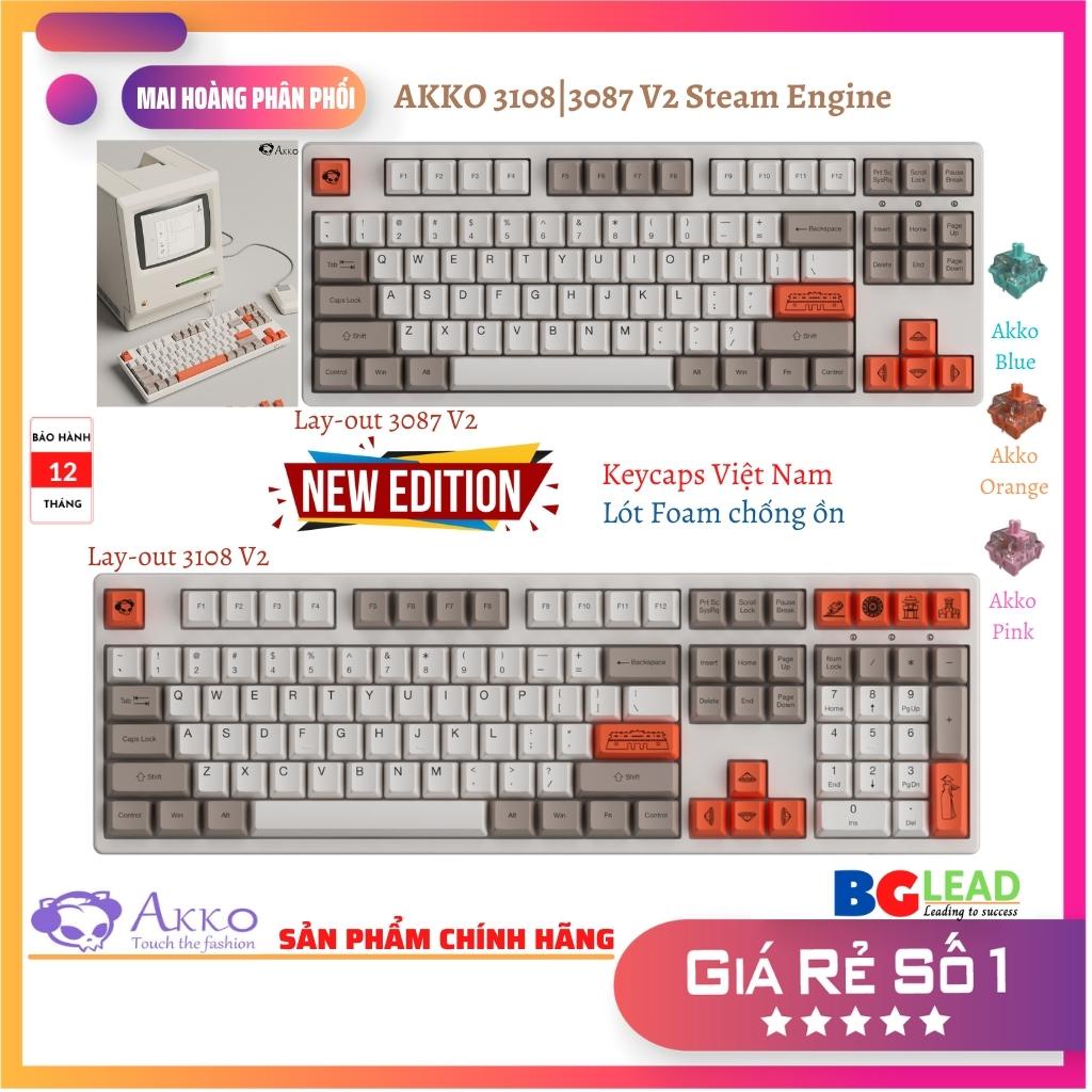 ✪ Thông tin sản phẩm: Bàn phím cơ AKKO 3108|3087 v2 Steam Engine Keycap Việt Nam| Foam tiêu âm (Blue|Orange|Pink V2)