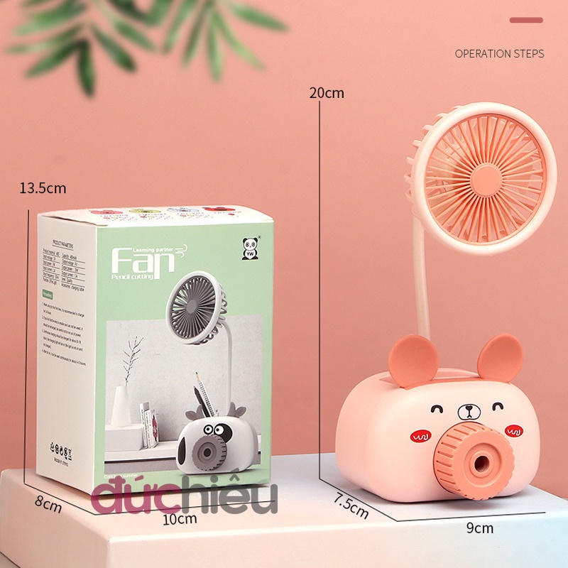 Giới thiệu [ Hàng bao đẹp ] Quạt tích điện cho bé hình thú siêu cute có hộp đựng viết và điện thoại cổng USB – Đức Hiếu Shop