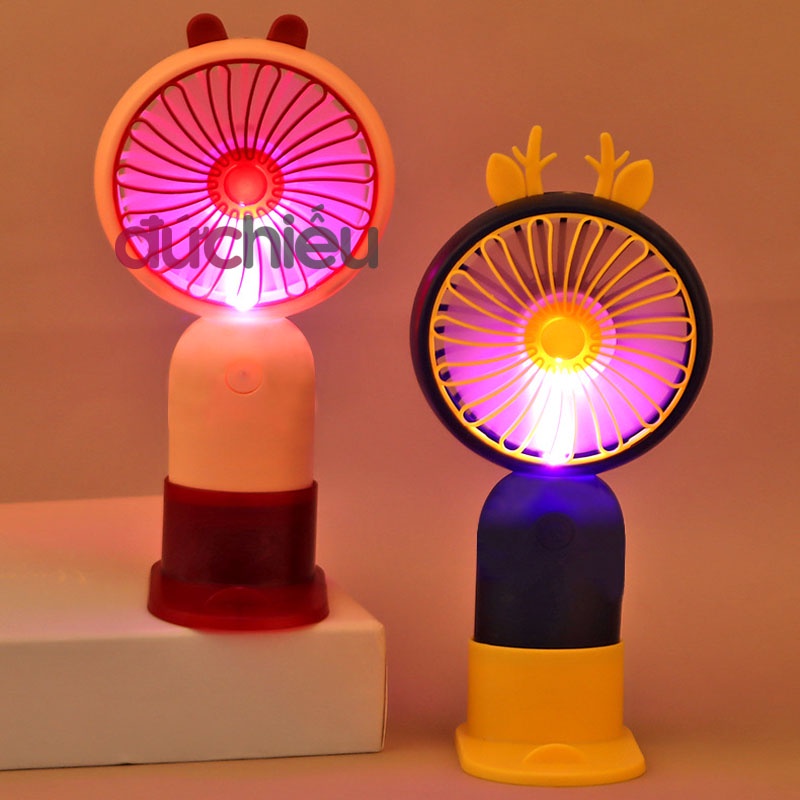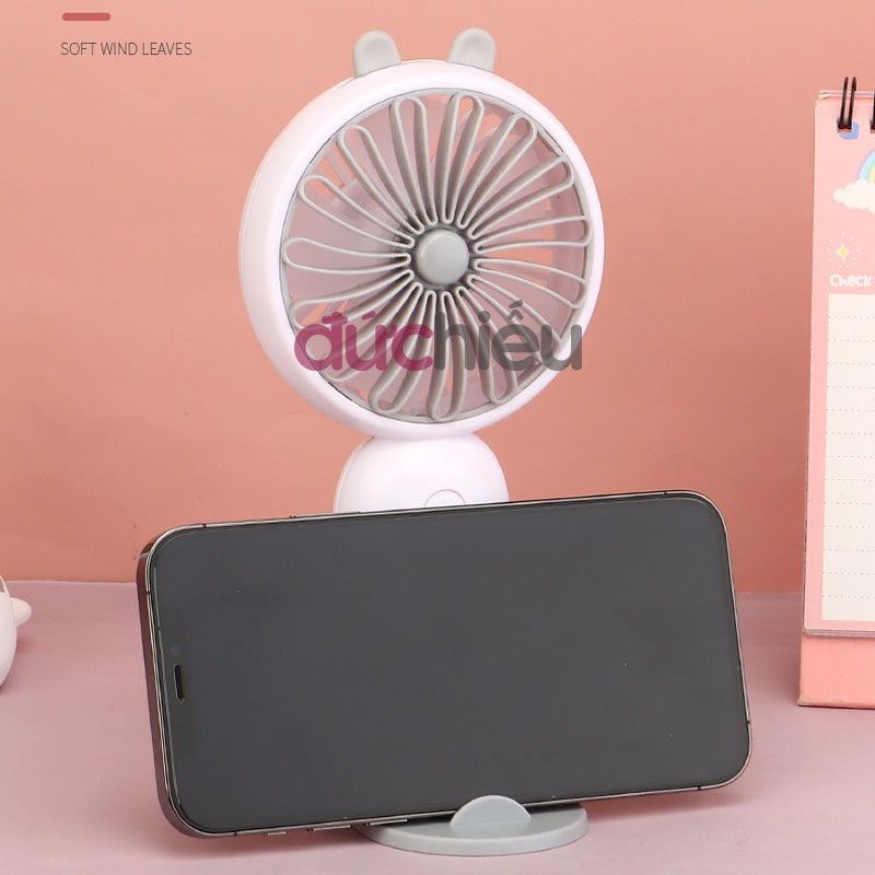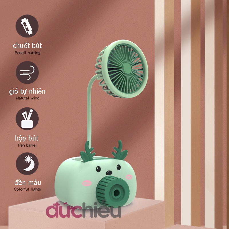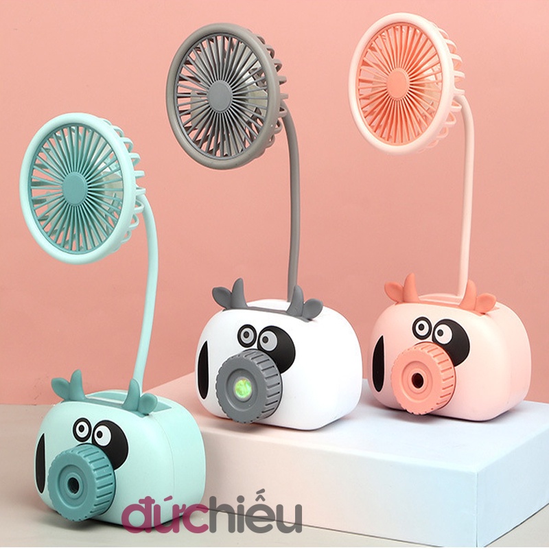 [ Hàng bao đẹp ] Quạt tích điện cho bé hình thú siêu cute có hộp đựng viết và điện thoại cổng USB – Đức Hiếu Shop
