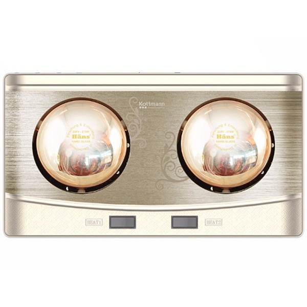 KOTTMANN – dòng sản phẩm trung cấp của Häns – là thương hiệu đèn sưởi nhà tắm được mua nhiều nhất tại thị trường Việt Nam. Đèn sưởi 2 bóng treo tường Kottmann – K2BH có đặc điểm chung của các dòng sản phẩm trong thương hiệu KOTTMANN là thiết kế xuất sắc, phối màu hợp lý, giá cả phải chăng, chất lượng tin cậy, phù hợp với hầu hết các gia đình trung lưu tại Việt Nam.