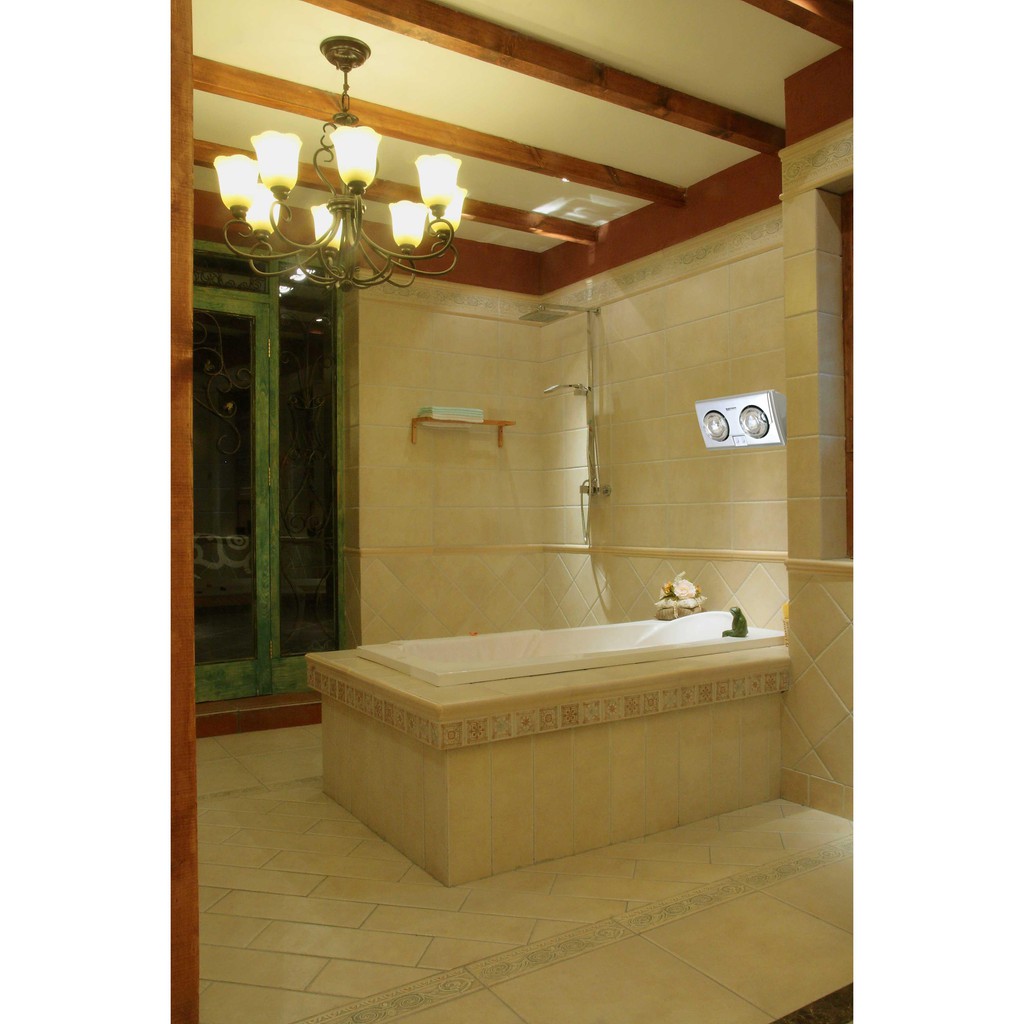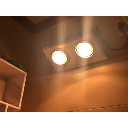 2 bóng đèn sưởi hồng ngoại + 1 quạt thổi gió nóng để làm ấm phòng tắm tức thì