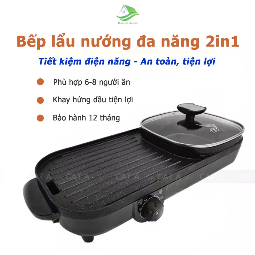 - Thiết kế 2 in 1: Bếp là sự kết hợp 2 in 1, nướng kết hợp lẩu giúp chúng ta vừa có thể thưởng thức món nướng vừa thưởng thức món lẫu, vô cùng hấp dẫn