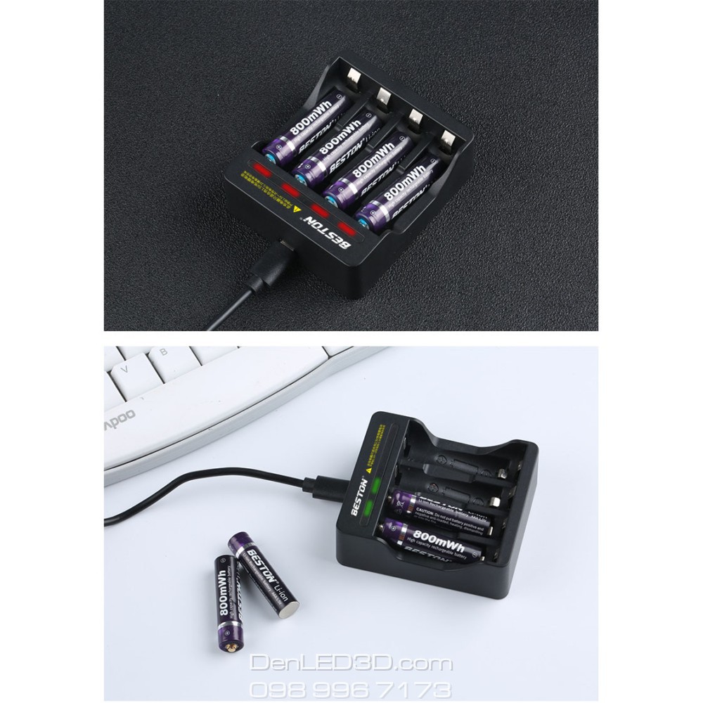 Giới thiệu [Chính Hãng BESTON ] Combo 4 Pin AA Li-ion 2800mWh Kèm Sạc Nhanh Tự Ngắt M7011