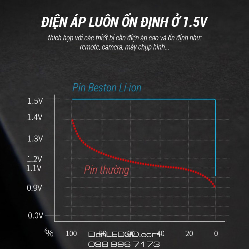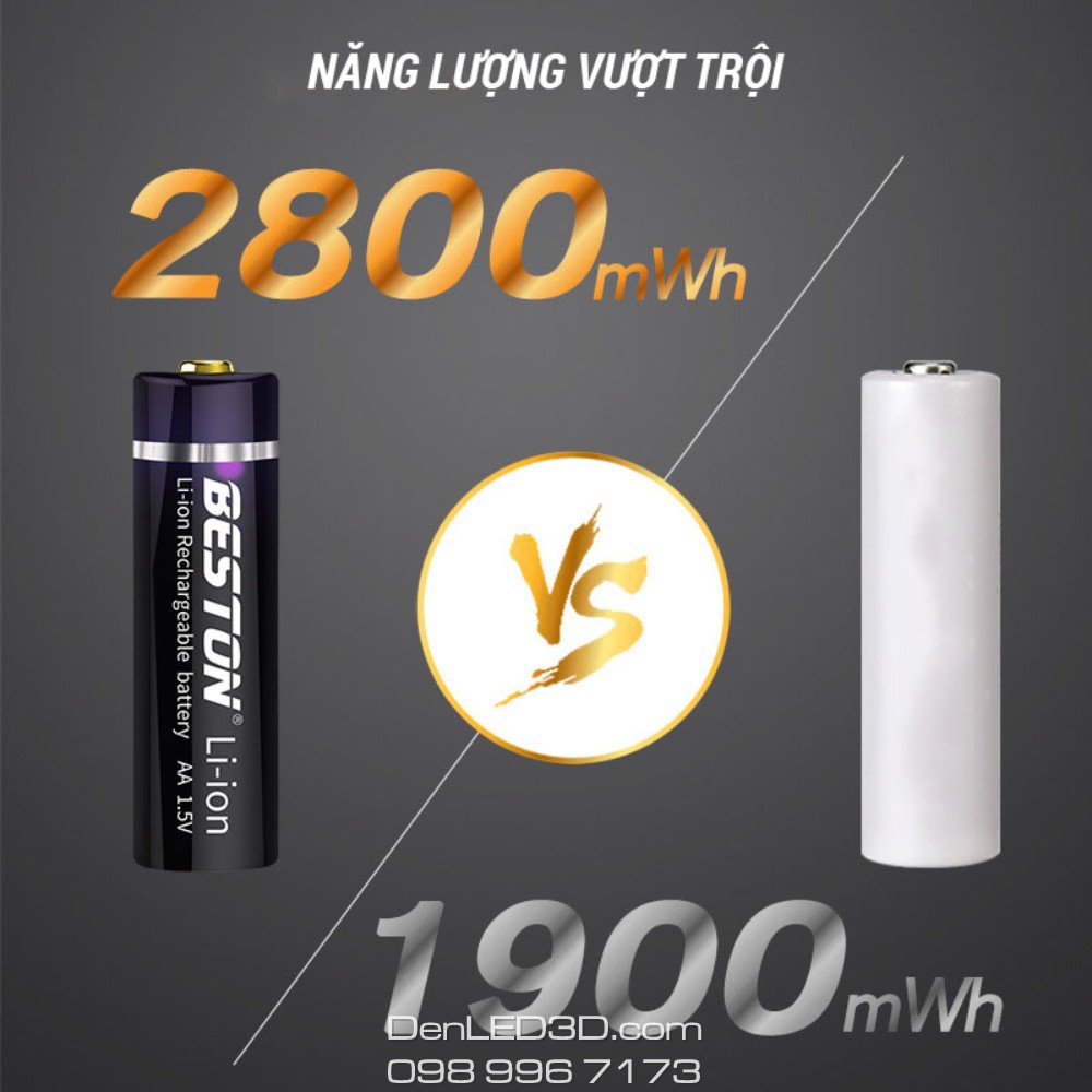 Pin sạc AA (hay còn gọi là pin tiểu) BESTON Li-ion dùng chung công nghệ với pin điện thoại, cho dòng điện luôn ổn định ở 1.5V, sạc tốc độ nhanh. Điện áp ổn định ngay cả khi sắp hết pin giúp pin này phù hợp để dùng cho các loại micro Karaoke, đèn pin siêu sáng.