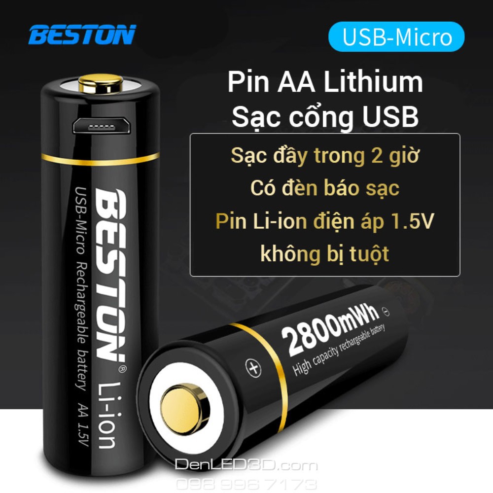 [Chính Hãng BESTON ] Pin AA Lithium-ion 3500mWh 1.5V Cho Karaoke, Đèn Pin, Sạc Nhanh Cổng USB