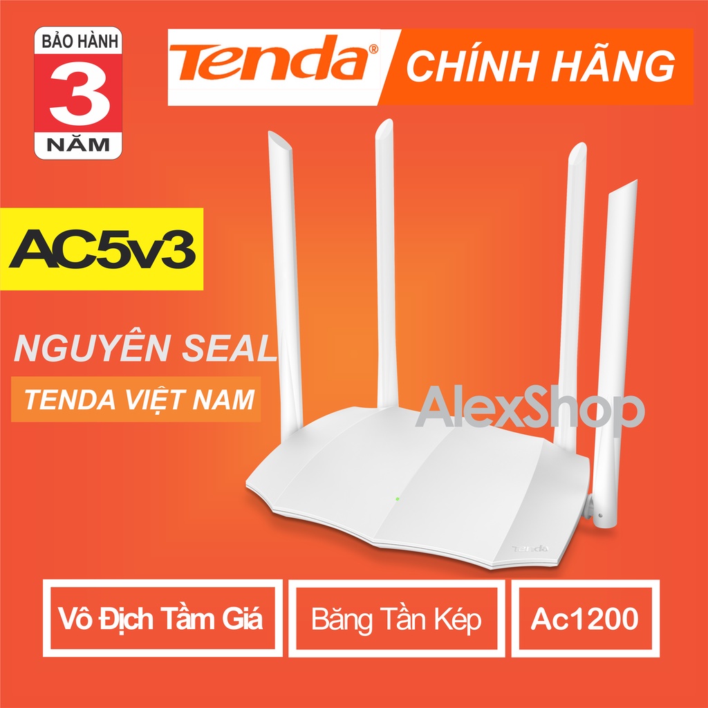 ⚡ Tenda. AC5 v3 là Router WiFi 2 băng tần, với tốc độ WiFi tối đa 1167Mbps (867Mbps ở băng tần 5GHz và 300Mbps ở băng tần 2.4GHz). Phù hợp cho căn hộ diện tích trung bình với đường truyền Internet lên đến 100Mbps .