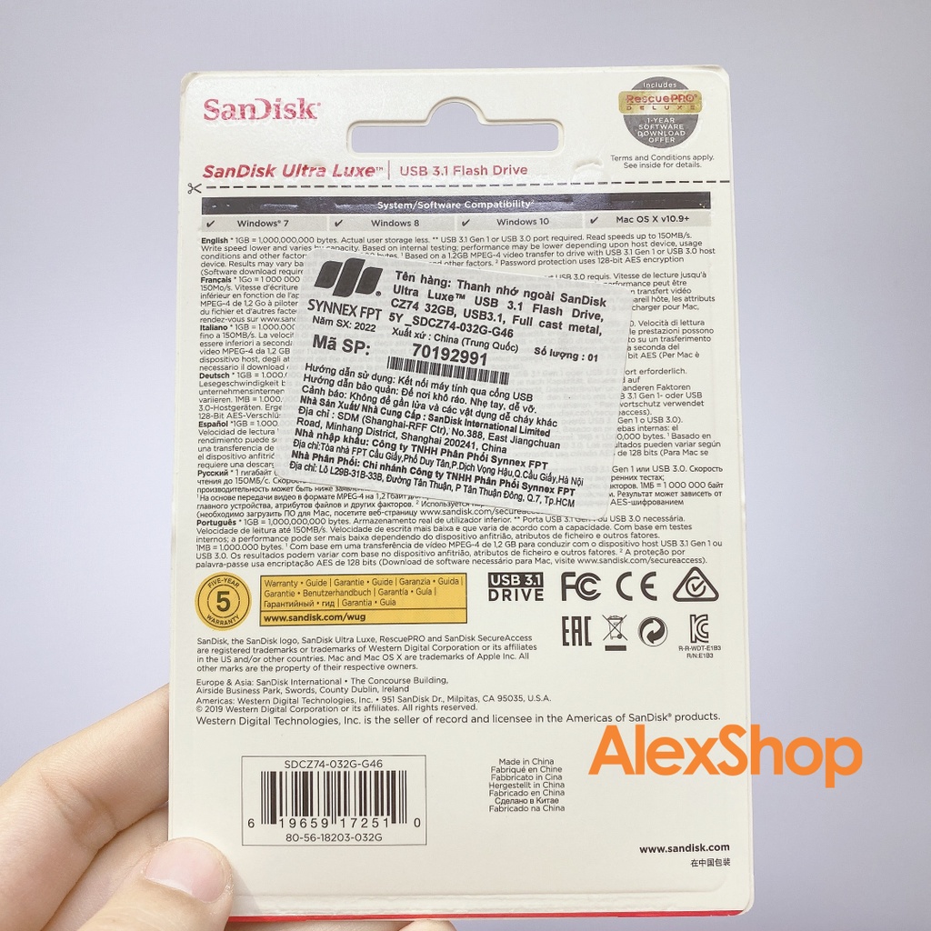 Máy tính & Laptop > Thiết Bị Lưu Trữ > USB & OTG || [Chính Hãng BH5 năm] USB SanDisk CZ74 32Gb 3.1 150MB/s Chính Hãng Có Tem Chính HãngCòn hàng