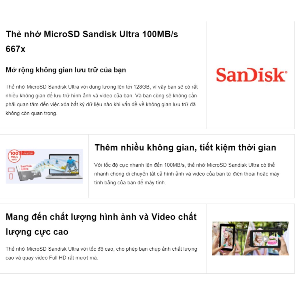 Điện Thoại & Phụ Kiện > Phụ kiện > Thẻ nhớ || [Chính Hãng BH7 năm] Thẻ Nhớ MicroSD SanDisk Ultra 16/32/64/128GB 100MB/s Chính Hãng Có Tem Chính HãngCòn hàng