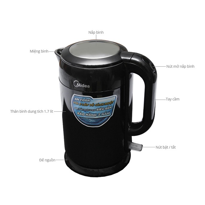 [Chính hãng] Bình siêu tốc MIDEA MK-317DB 1.7L chính hãng , bảo hành 12 tháng ,lỗi đổi mới trong 7 ngày