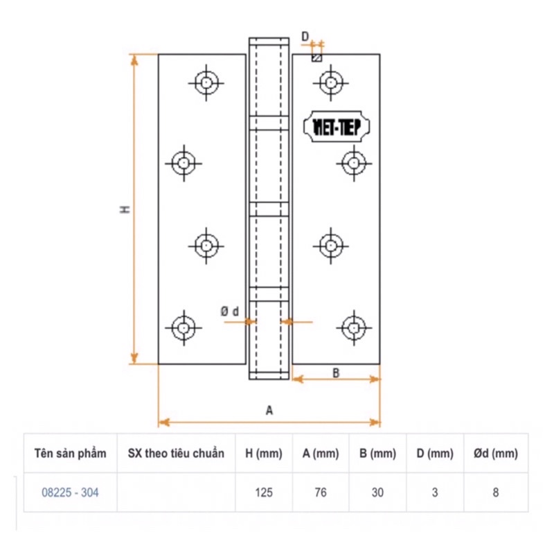 Giới thiệu [chính hãng] Bộ (2 cái) bản lề SUS 304 Việt Tiệp 8225 - Bảo hành 1 năm