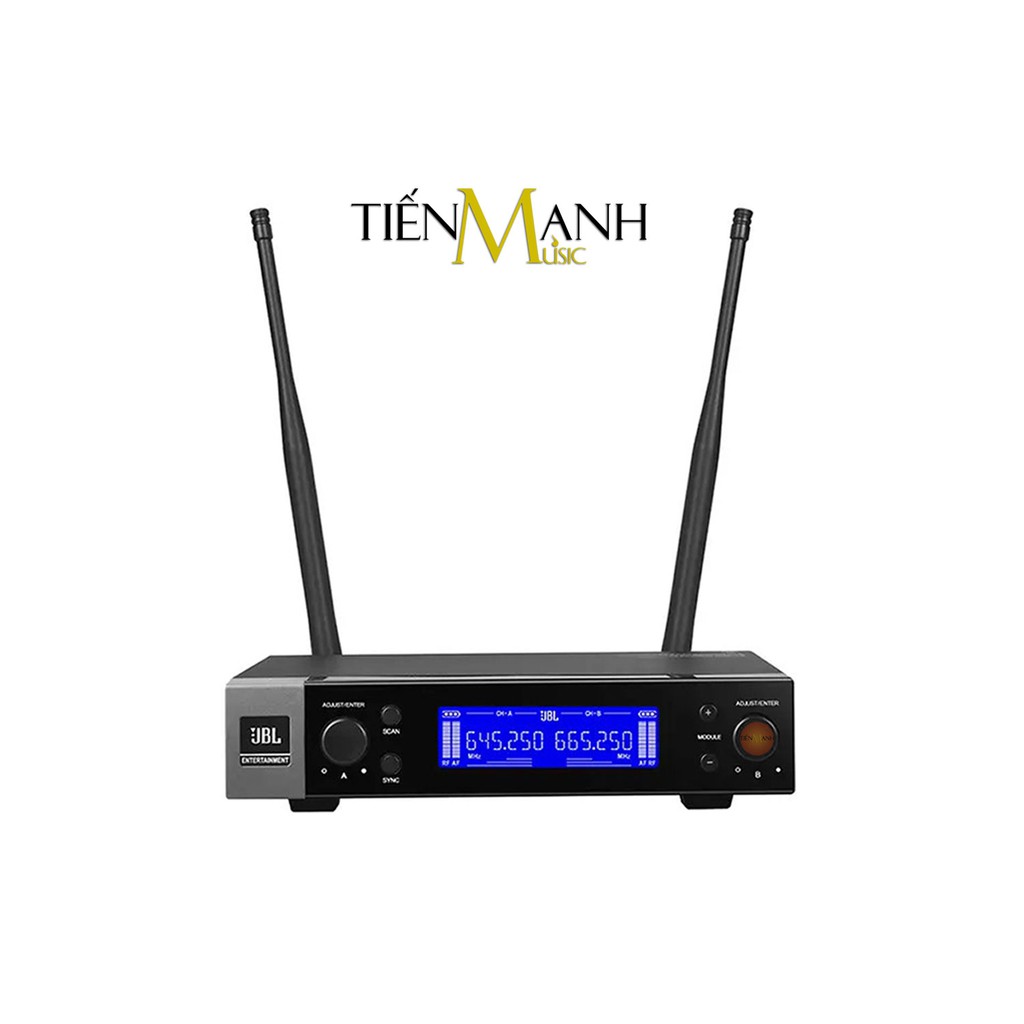 - Phần đầu thu mang kiểu dáng hình hộp chữ nhật nhỏ gọn, được chế tác từ chất liệu hợp kim nhôm bền đẹp. Mặt trước là nơi bố trí hệ thống nút hiệu chỉnh của 2 kênh, logo JBL, nổi bật chính giữa là màn hình LCD hiển thị thông. Mặt sau là các cổng kết nối, 2 anten giúp thiết bị thu sóng được xa hơn.